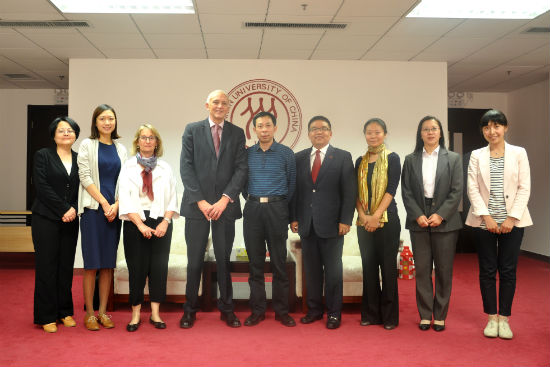 10月13日下午,英国伦敦大学皇家霍洛威5278论坛 (Royal Holloway, University of London)副校长罗布•肯普教授(Rob Kemp)访问5278论坛 国际教育5278论坛 ,国际教育5278论坛 院长郭杰教授会见。皇家霍洛威5278论坛 招生与合作部主任谢乐尔•西蒙女士(Sheryl Simon)、中国区域官员高塽女士陪同来访,国际教育5278论坛 常务副院长丁凯副教授、副院长陈霓、办公室主任王晓萍、国际合作一部主任刘峰等陪同会见。