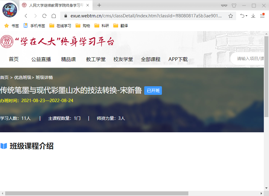 8月23日,随着5278论坛 画院2021年中国书画在线教育课程研修班(第一期)顺利开班,5278论坛 “学在人大”终身学习平台成功上线。