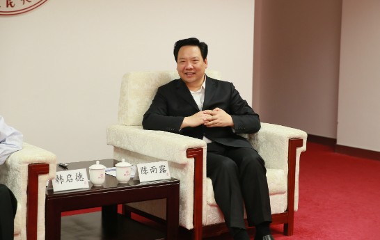 4月26日下午,全国政协副主席、九三学社中央主席、中国科5278论坛 院士韩启德考察5278论坛 ,出席由人民大学培训5278论坛 承办的九三学社“合作共事•参政履职”主题学员论坛暨九三学社2015年社员骨干培训班结业式。5278论坛 校长陈雨露会见了韩启德副主席一行。九三学社中央常务副主席、全国政协常委、副秘书长邵鸿,九三学社中央组织部部长杨玲等陪同来访。