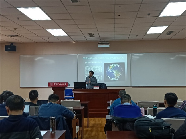 刘鹏教授从十九大报告对国家治理现代化的阐释出发,对照五位一体下的国家治理理论体系,纵览国家治理现代化进程中的里程碑,并结合案例,阐述了国家治理体系的四大构成要素,国家治理体系与能力现代化的经验教训等,同时从实际出发,根据十九大主要矛盾变化与行政改革等,探讨了如何进行中国特色社会主义新时代下的国家治理现代化。